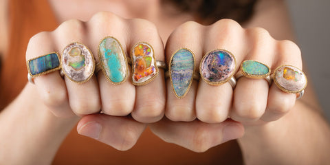 Gemstones are at the core of Amáli’s design philosophy. Each stone is hand-selected for its unique characteristics—whether it’s the ethereal shimmer of moonstone, the rich depth of tourmaline, or the organic textures of boulder opals. The stone always comes first, and the design follows.